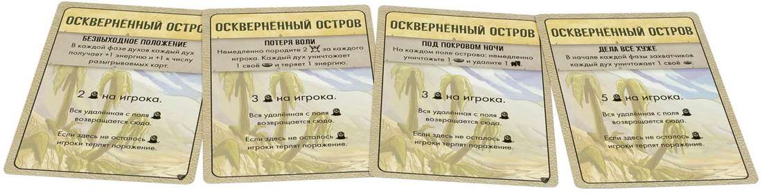 - Планшеты духов, завоевателей и сценариев разнообразят выбор игроков при подготовке.