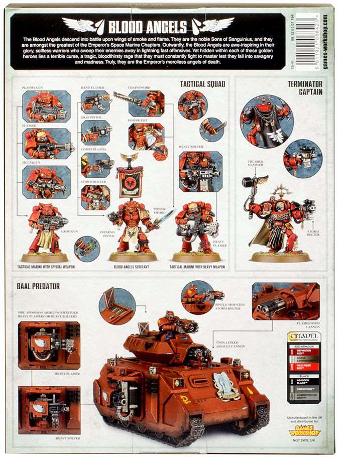 – детали для сборки 10 миниатюр Тактического десанта Кровавых Ангелов