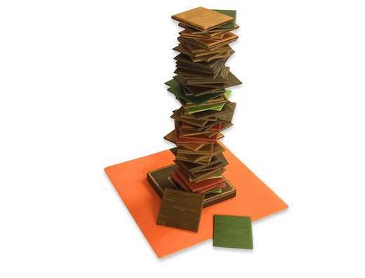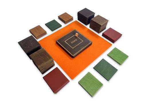 Коробка компактная и лаконичная – только глубокий черный цвет и надпись на крышке. А внутри, кроме игрового поля и коврика (служащего для лучшего сцепления поля с поверхностью), вы найдете 72 разноцветных квадратных элемента игры. Это и есть, собственно, Степсы. Кроме цвета они отличаются весом и делятся на несколько видов: