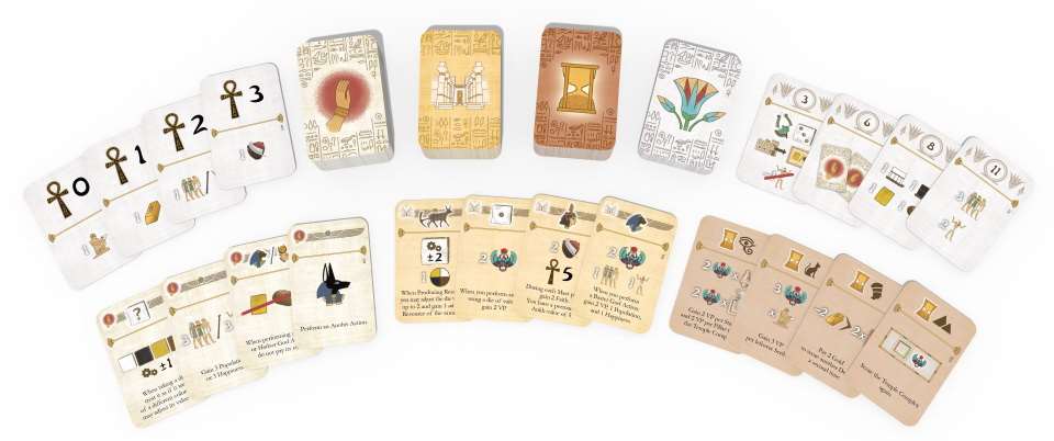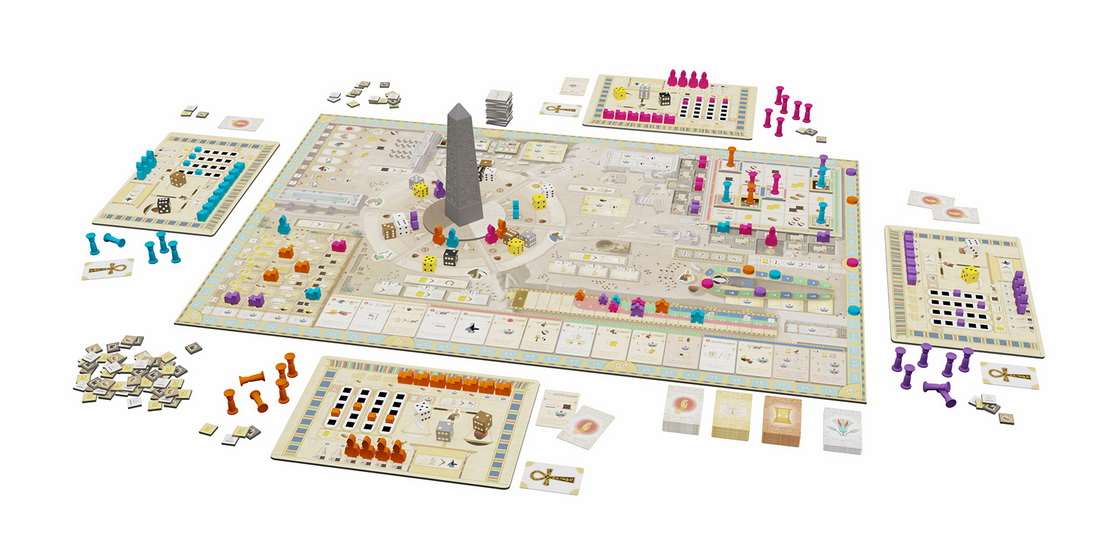 Игровое поле в игре представляет собой территорию, поделенную на шесть частей, в каждой из которых главенствует один из египетских богов: Ра, Гор, Бастет, Хатхор, Осирис и Тот. Каждый игрок получает индивидуальный планшет с компонентами своего цвета.