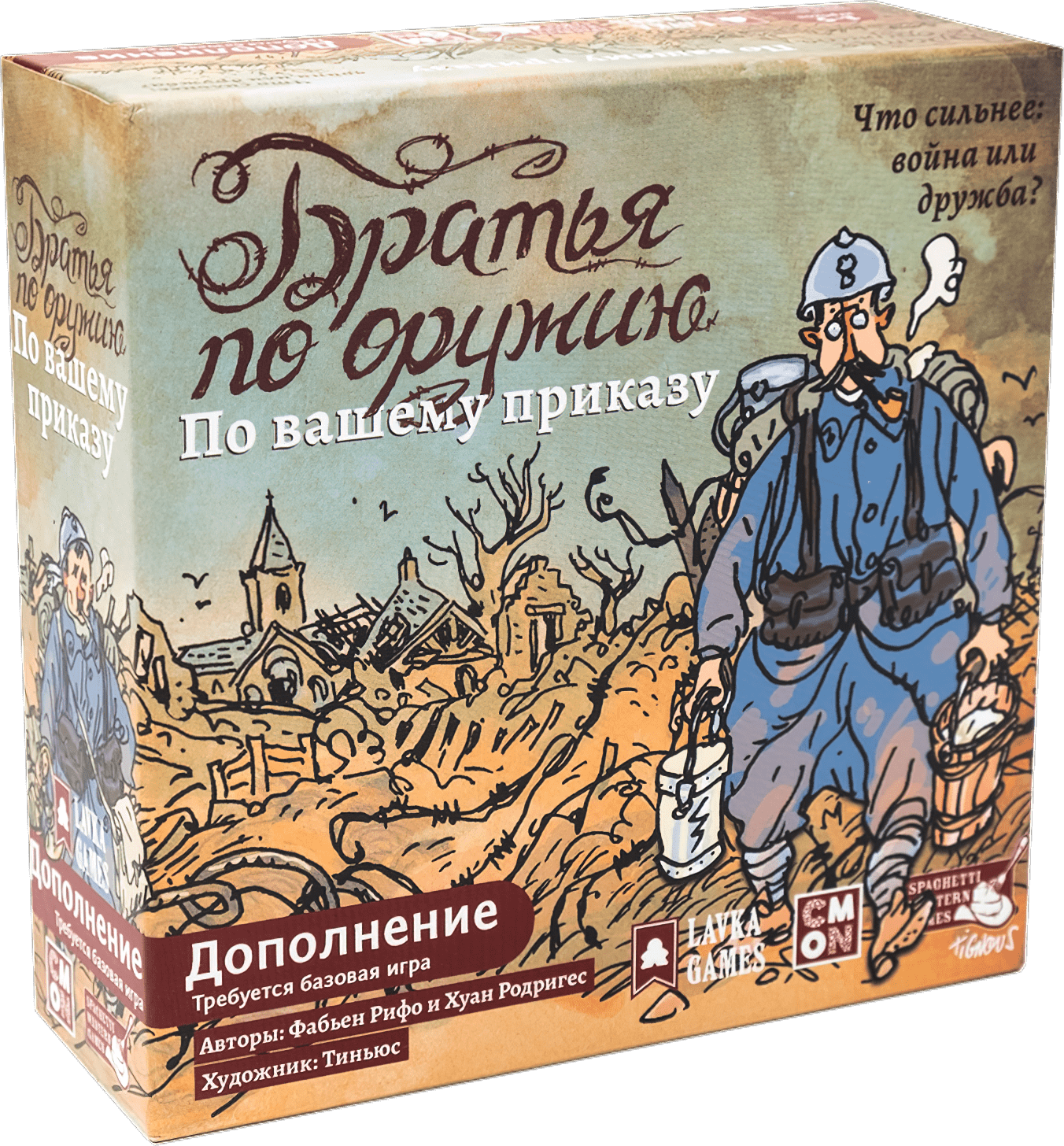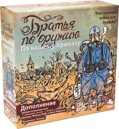 «Братья по оружию: По вашему приказу» - это небольшое дополнение к карточной настольной игре "Братья по оружию"., в которой, как вы помните, мы помогали пятерым друзьям преодолеть все тяготы воинской службы на полях Первой Мировой Войны.