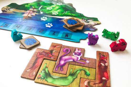 В начале партии игроки получают по одному кораблю-планшету, на который и придется выкладывать котов, вписанных в полимино. То есть каждый котик будет размещен на плитках разнообразной формы, и выкладывая их на своем корабле придется применять навыки игры в тетрис. Ведь в конце игры победные баллы игроки получат за наиболее полно собранные семейства котов одинакового цвета, а незаполненные каюты и оставшиеся на палубе крысы принесут наоборот штрафные очки.