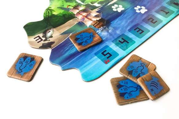 - Фаза рыбалки. Игроки получают по 20 фигурок-рыбок, на которые и смогут приманить котиков с острова.