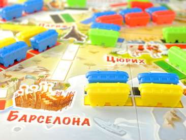 Каждый из игроков возьмет себе по 20 пластиковых миниатюрок вагончиков а также по 4 карты составов. Еще 4 карты составов нужно будет выложить лицом вверх возле игрового поля. Кроме того, каждый из участников получит по две карты заданий – на которых указано, какие именно города необходимо соединить железнодорожными путями.