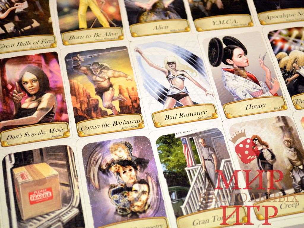 Настольная игра Timeline: Music & Cinema (Таймлайн: Музыка и кино) - это пятая небольшая тематическая коробочка из популярной серии игр Timeline. На этот раз, как и следует из названия, все задания посвящены истории музыки и кинематографа. В начале игры участники получат несколько карточек, которые размещают перед собой оборотной стороной вверх, где изображены только иллюстрация и событие. В центр стола выкладывается одна карта, которая начинает временной ряд. Игроки по очереди добавляют свои карточки в ряд, переворачивая из так, чтобы открылась дата. Если хронология не нарушена, игрок избавляется от карточки. Иначе ей на замену берется штрафная карта. Побеждает тот, кому первому удастся избавиться от своих карт, продемонстрировав лучшие знания и интуицию.