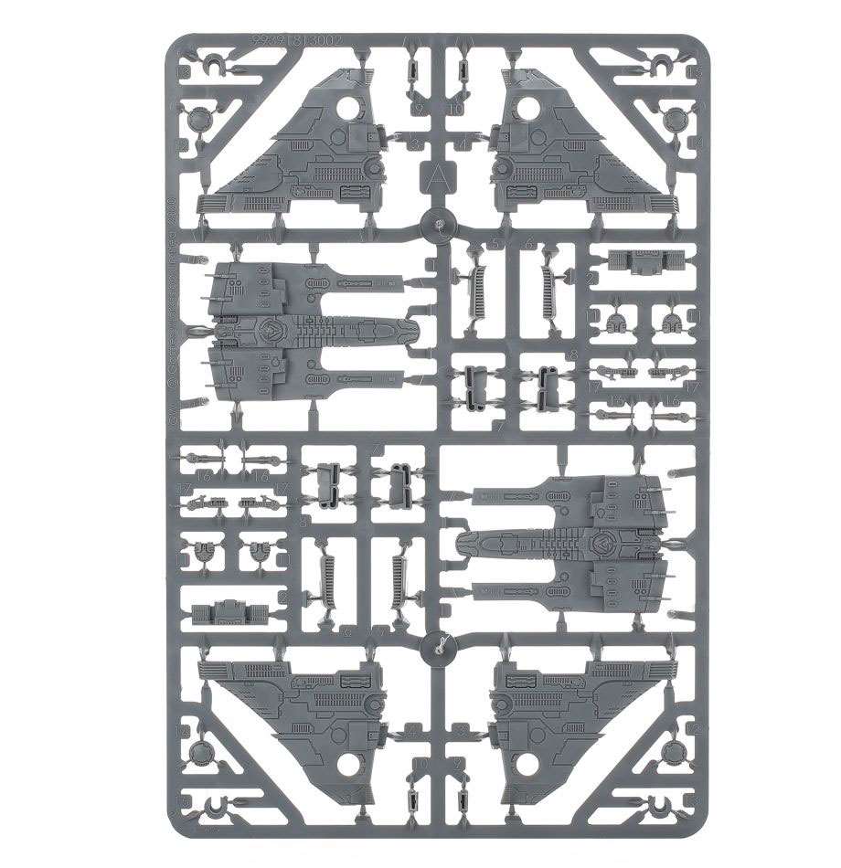 - 1 аркуш перевідних наклейок (для літаків Imperial Navy, літаків Astra Militarum та T'au Air Caste, що входять до комплекту)