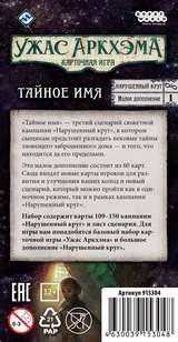Жах Аркхему. Карткова гра: Порушений коло. Таємне ім'я – це третє доповнення з серії «Порушене коло». Як завжди, в коробці ви знайдете 60 карт і лист сценарію окремої місії для двох гравців. Доповнення містить повноцінну історії, яка відкриє вуаль над новими загадками містичних подій в Аркхемі.