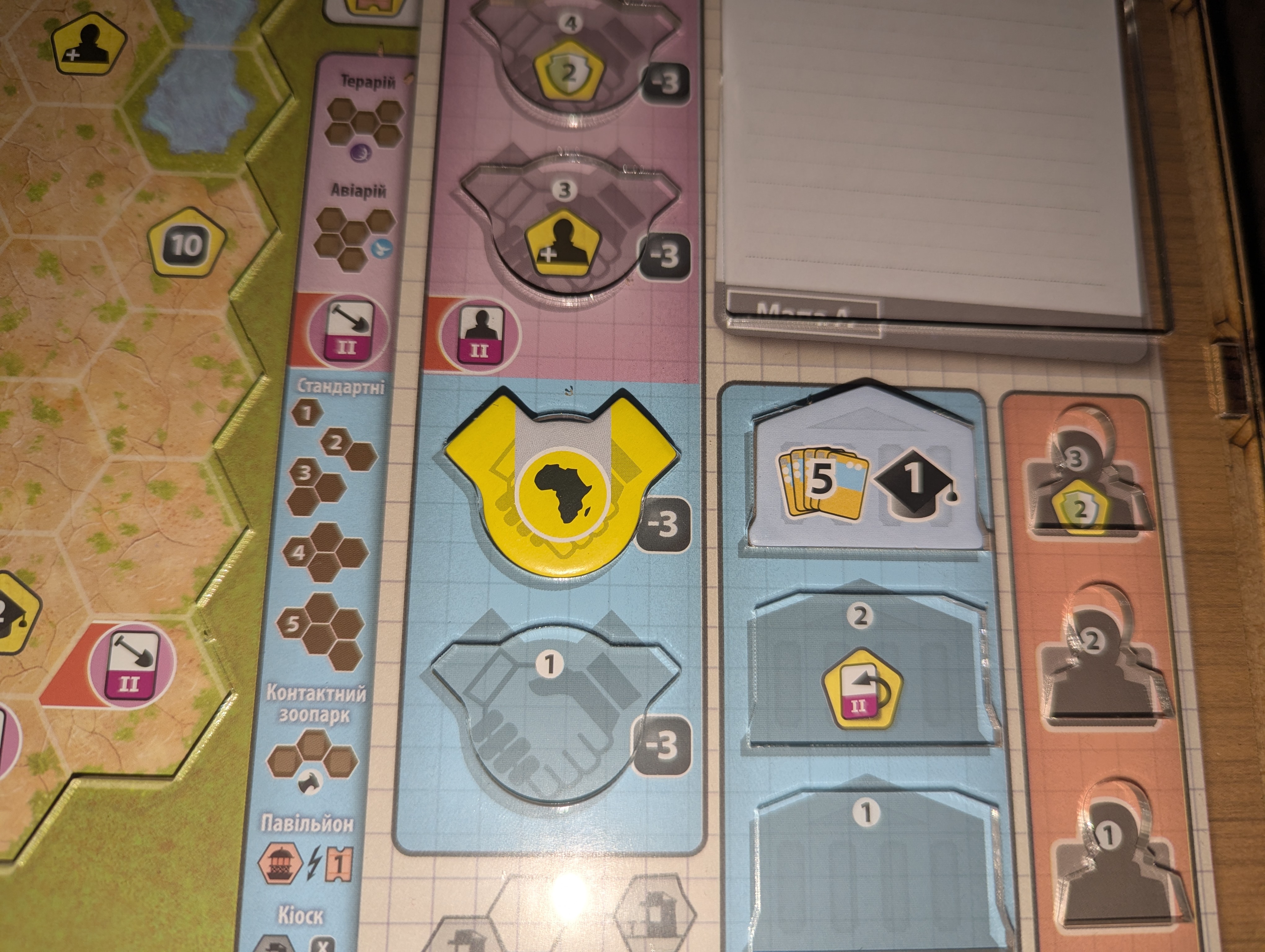 - Планшет гравців погано сумісний з українською локалізацією, жетони університетів і партнерських зоопарків не влазять.