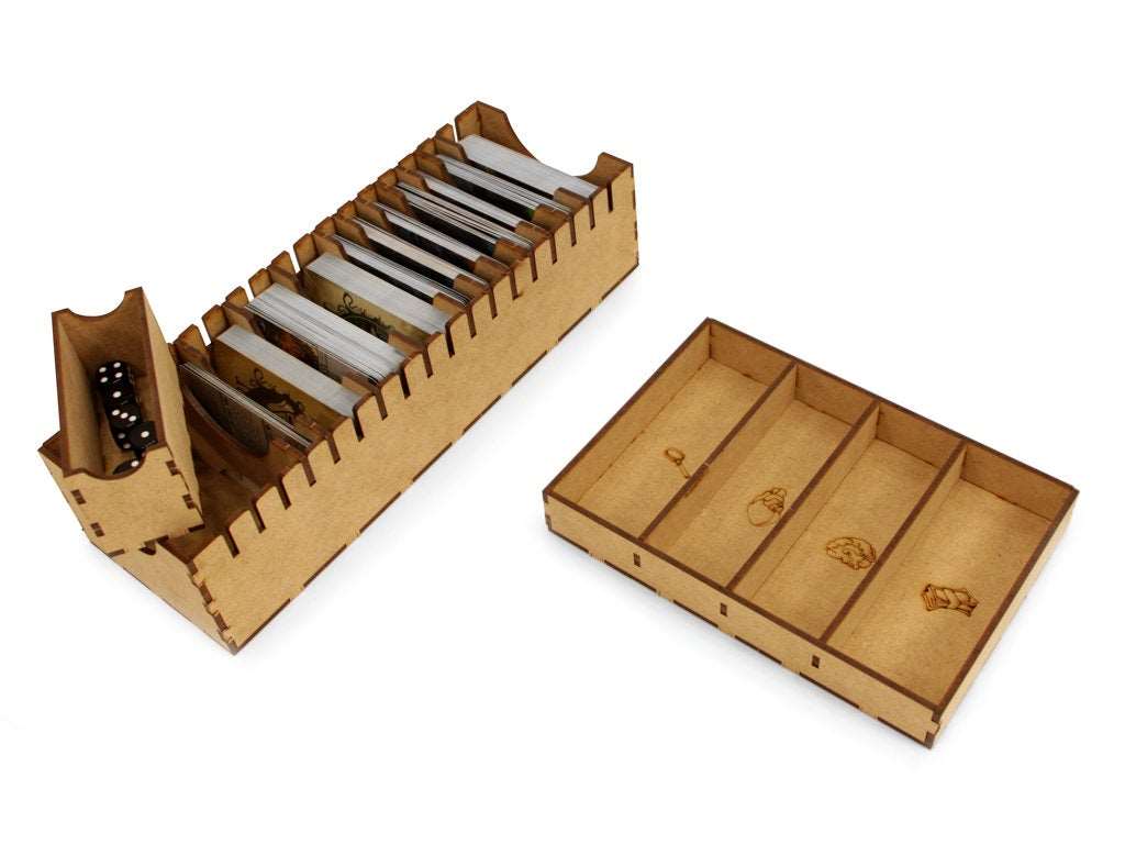 Достаточно неплохой органайзер. Может вместить в себя первое дополнение даже. Но не более. Отсутсвие крышек приводит к тому что компоненты рассыпаются по коробке при транспортировке на боку.