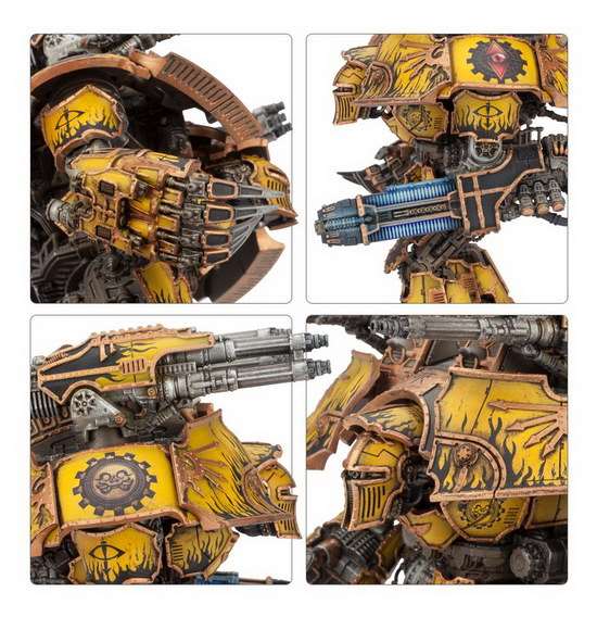 Увага! Мініатюри в коробці постачаються не зібрані та не пофарбовані. Процес розфарбовування мініатюр – достатньо цікава та захоплива справа для багатьох шанувальників настільних ігор з мініатюрами та колекціонерів. Для якісного розфарбовування Ваших мініатюр в нашому магазині наявний широкий асортимент спеціальних фарб та необхідного інвентарю відмінної якості. Також, крім вичерпної інформації про вражаючі гігантські машини, в книзі правил Адептус Титанікус зі стартового набору Єресь Хоруса, а також в книзі доповнення для кампанії Доля Молеха Ви знайдете зразки колірних схем та геральдики для мініатюр, які можна використати, як джерело натхнення для розфарбовування та створення власних коллекційних шедеврів. Приклади розфарбованих гравцями мініатюр можна побачити нижче: