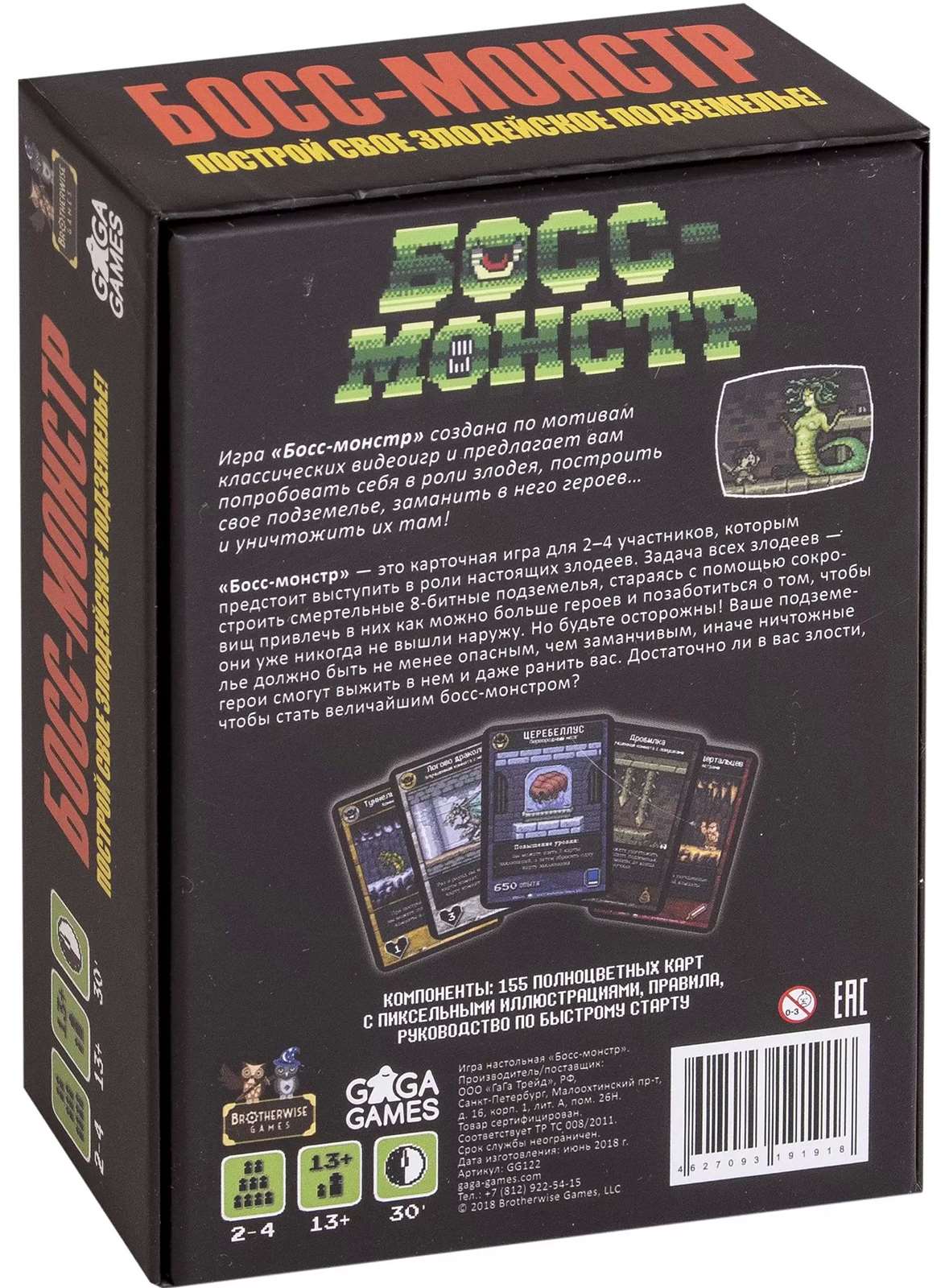Життя поганця могло б бути повним приємних моментів, теплих ванн з піною з бульками і танців в компанії звабливих рабинь, якщо б не одне велике АЛЕ… настирливі герої. Раз в декілька годин дзвінок, що висить в кабінеті великого Боса-монстра, оповіщував про появу чергової порції шукачів пригод, що прибували в підземелля з усіх кінців королівства. Після цього, хочеш-не хочеш, а доводилось відривати спопеляючий погляд від кристаловізора і улюблених новин на каналі Підземелля 24, і йти перезаряджати пастки, роздавати стусани лінивим міньонам і з грізним виглядом в найглибшій печері очікувати появи героїв… якщо, звичайно, їм вдасться до неї добратися.Тип: карткова гра, фентезиВидавець: GaGa Games, Brotherwise Games (США)