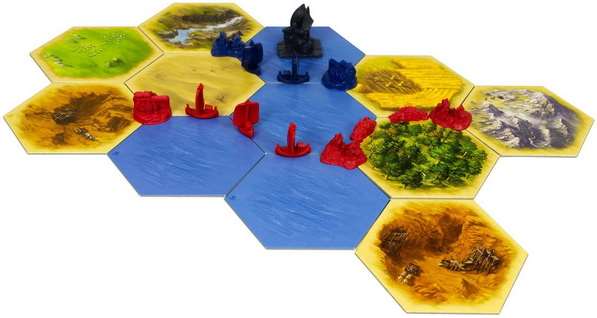 Ігрове поле – острів – складається з шестикутних тайлів гексів, кожен з яких має свій власний вид ресурсів. При цьому в кожну партію гекси кладуться довільно, складаючи новий зовнішній вигляд острова. Крім того окремо на кожну локацію викладається жетон з цифрою, утворюючи ще одну довільну змінну.