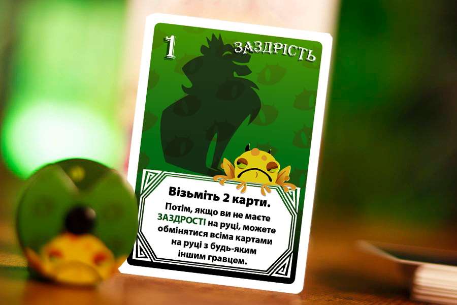 Грішки (The Deadlies) – це швидка гра, в якій ідеально сплавлені тематика та механіки. Кожен гріх пропонує гравцям здійснювати дії, які точно їм підходять! Наприклад, Жадібність змушувати набирати все більше карт, а Заздрість повторювати дії іншого гравця.