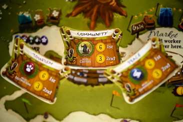 Оригінальне дерево в грі – це звичайно видовищно, але ось тільки з часом жодна картонна конструкція не витримає. Тепер в гру додано поле з ярмарком, яке замінює на столі Дерево і містить вказівки для місць під карти.