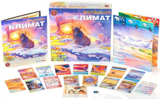 Еволюція. Клімат - це друге розширення до настільної гри Еволюція. Природний відбір. Воно приносить в гру вплив клімату на створені гравцями тваринні організми. Коливання температури впливає не тільки на тварин, але і опосередковано, на доступну кількість їжі. Крім того, в грі можуть з'являтися різні серйозні кліматичні зміни, як виверження вулканів, танення снігів і навіть падіння метеорита. І у всіх цих подіях у ваших тварин буде все та ж мета - вижити.