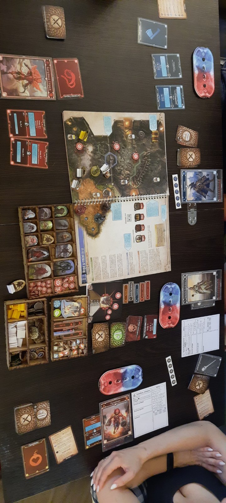 Це моя перша гра такого жанру. Зіграли 4 сценарії і мені дуже сподобалося!! Можливо ще посприяло те, що мені подобається фентезі та різна фантастика, та добре розвинута фантазія))). Сподобалися всі компоненти, фігурки, картки, фішки, те як обережно наче дитину за руку проводять по перших сценаріях та знайомлять з механіками гри і сюжетом, як поступово додають градус складності та напруженості в грі. Після того як згідно інструкції в коробці з грою розсортувати всі компоненти по пакетиках та навчитися розкладати згідно сценарія компоненти, то підготовка до гри займає досить мало часу. Починали гру в 3 героя..та нажаль 4 сценарій змушені були проходити в 2 героя (одного героя ми втрати, не зміг долучитися до гри через форс-мажорні сімейні обставини))), та дякувати грі вона дає можливість підлаштовуватися під такі життєві повороти. Тож загалом для мене гра на 9.5 з 10...