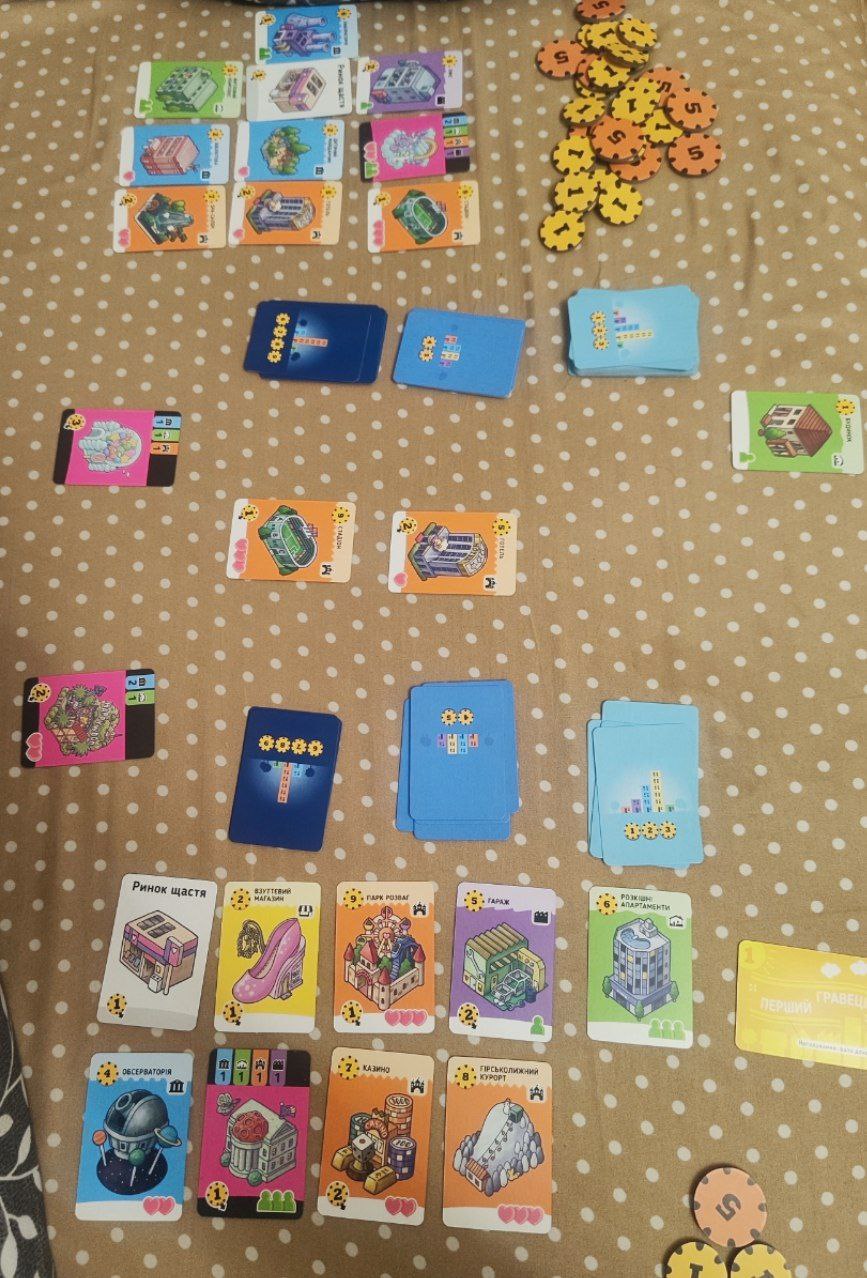 «Місто Щастя» дійсно створене для того, щоб дарувати позитивні емоції — прості правила, динамічний геймплей і атмосферне оформлення роблять її чудовим вибором як для сімейного вечора, так і для дружньої компанії. Ви дуже влучно підмітили головне: ефективні комбінації будівель, приємна взаємодія між картками та різні стратегії створюють чудовий простір для легкого, але продуманого змагання.