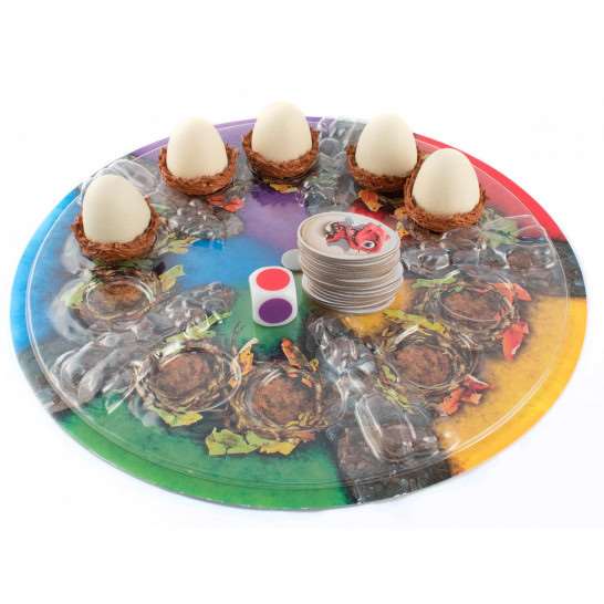 Гра проходить на спеціальному обертовому полі, поділеному на сектори різних кольорів, в кожному з яких є два місця під яєчка. На початку гри яйця з динозавриками розміщуються довільним чином, а гравці отримують кубик з кольоровими гранями.
