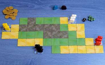 Кожен гравець отримує жетон човна та трьох піратів, яких розміщує на ньому. Острів складається з тайлів трьох видів: