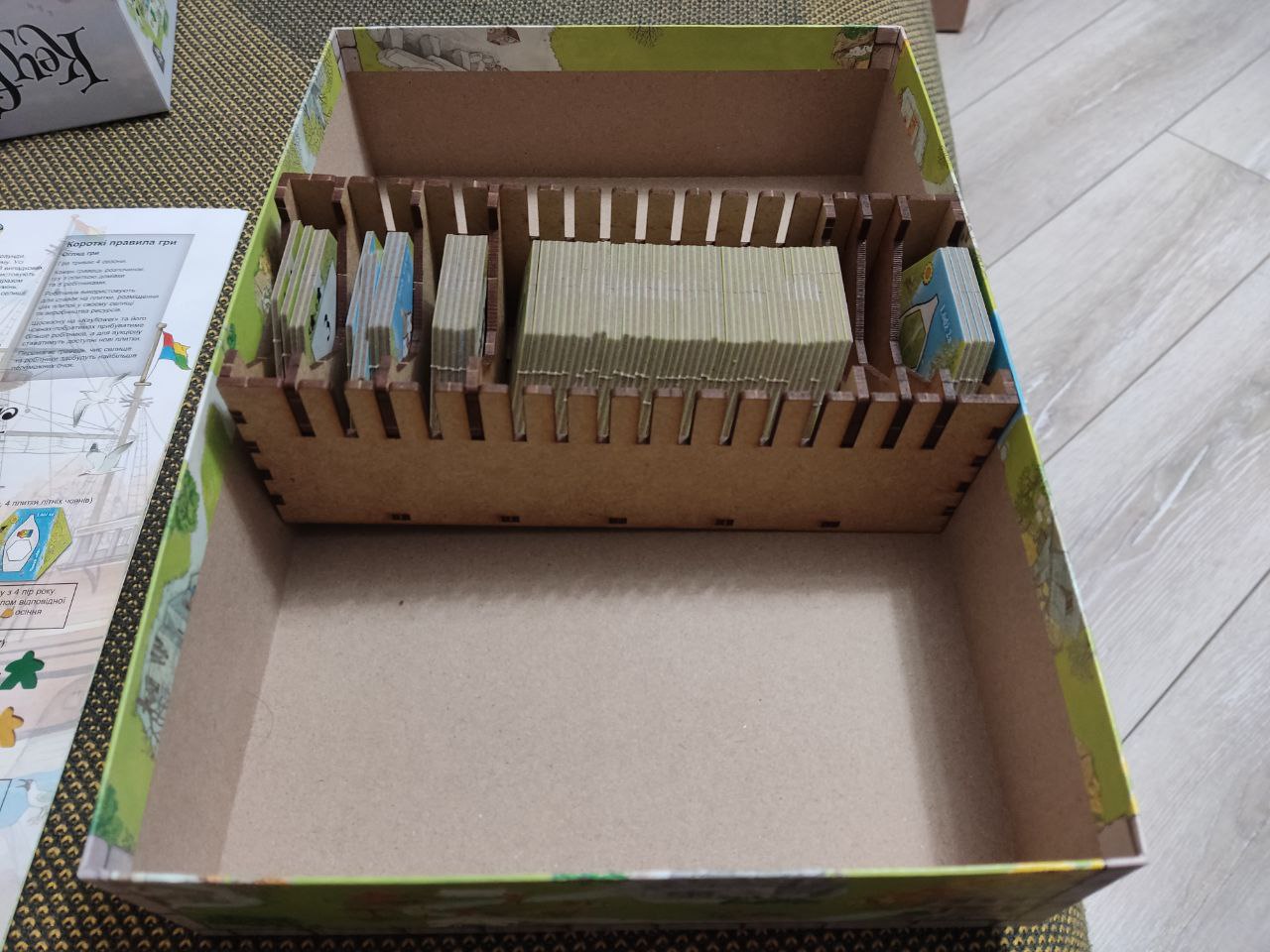 Андрiй (10-12-2023 | 14:52)Нажаль для українсько-польскої локалізації від WOODCAT не зовсім підходить, бо коробка десь на 5мм менша в ширину, і поперечне розташування лотків органайзера неможливе. Поклав вздовж, є невеликий зазор, але свою функцію органайзер буде виконувати.