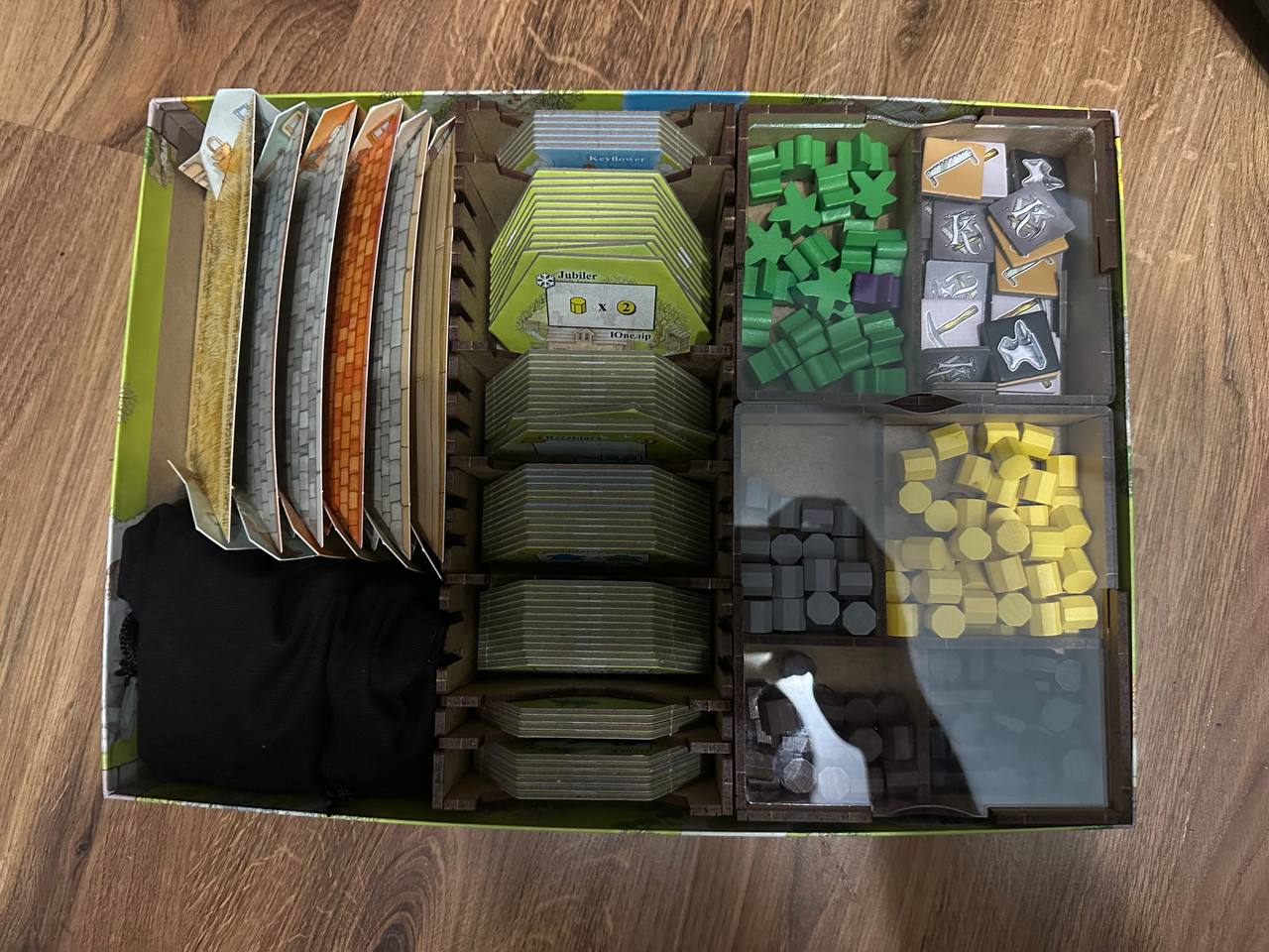 Keyflower. Це вже друга версія цього органайзера, тепер він став ще зручнішим і практичнішим, а дизайн вразить навіть наймайстерніших естетів. Органайзер виготовлено з дерева, він слугує чудовим аксесуаром для настільної гри, допоможе спростити процес розкладання та збирання гри і триматиме всі ігрові елементи в повному порядку.