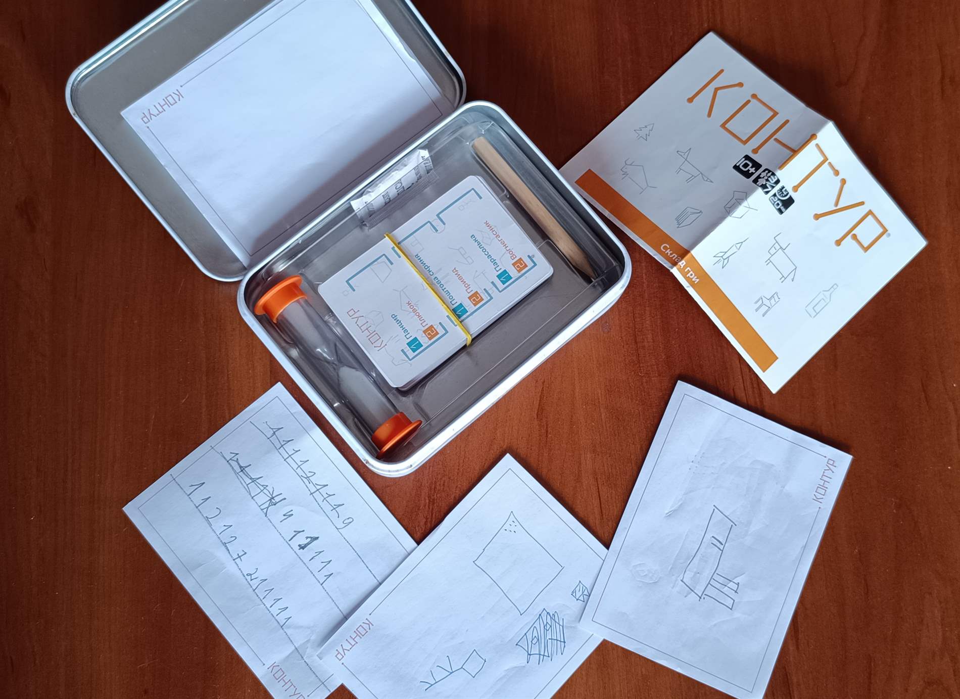 Контур – це проста настільна гра для пояснення слів один одному. Для неї зовсім не потрібно володіти видатними навичками міма або художника, словниковим запасом синонімів або знаннями на рівні учасників Що? Де? Коли? Досить буде швидко малювати прямі лінії! При цьому місця для гри практично не потрібно, що робить її ідеальним варіантом для гри в дорозі.