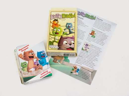 Комплектація настільної гри Котопаси:- 40 карт котів