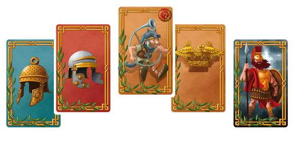 Серед карт до вас може перейти спорядження: щити, мечі, списи, камені, сокири. Або ж цінні карти гостей зі своїми ефектами. Наприклад, сенатор може обміняти карти з руки на карти суперників, а Клеопатра дозволяє перемістити у скид спорядження легіону суперника. Карта Гая Юлія Цезаря взагалі дозволяє взяти 4 нові карти з колоди й помістити карти тренувального табору в скид.