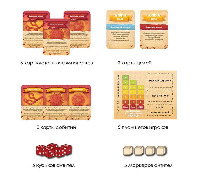 Комплектація настільної гри «Мікросвіт: Біологія клітини»: