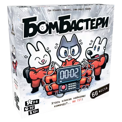 Настільна гра Бомбастери (Bomb Busters) — це веселий кооператив, в якому найскладніше — мовчати. А зберігати тишу доведеться, адже при всій своїй кумедності, настільна гра вимагає неабиякої концентрації, дедукції та сталевих нервів. Вам потрібно професійно знешкодити бомбу, тож готуйтесь до постійного відчуття, що хтось от-от переріже не той дріт і місія буде провалена.