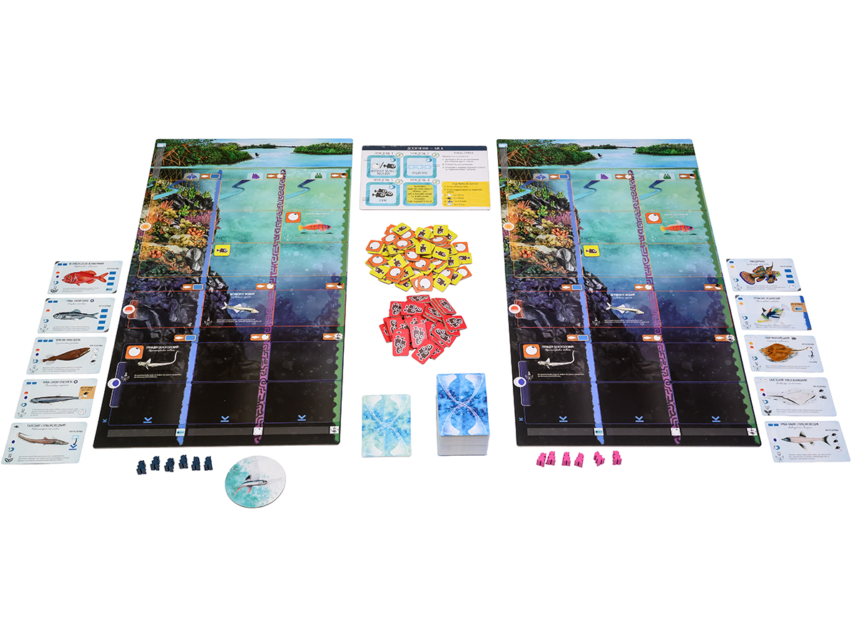 Спеціальні картки. Дозволяють взаємодіяти з іншими гравцями, змінюючи їхні ресурси або впливаючи на їхні стратегії. Наприклад, ви можете змусити опонента віддати частину своїх карток риб або забрати у нього риб’ячі ікринки.