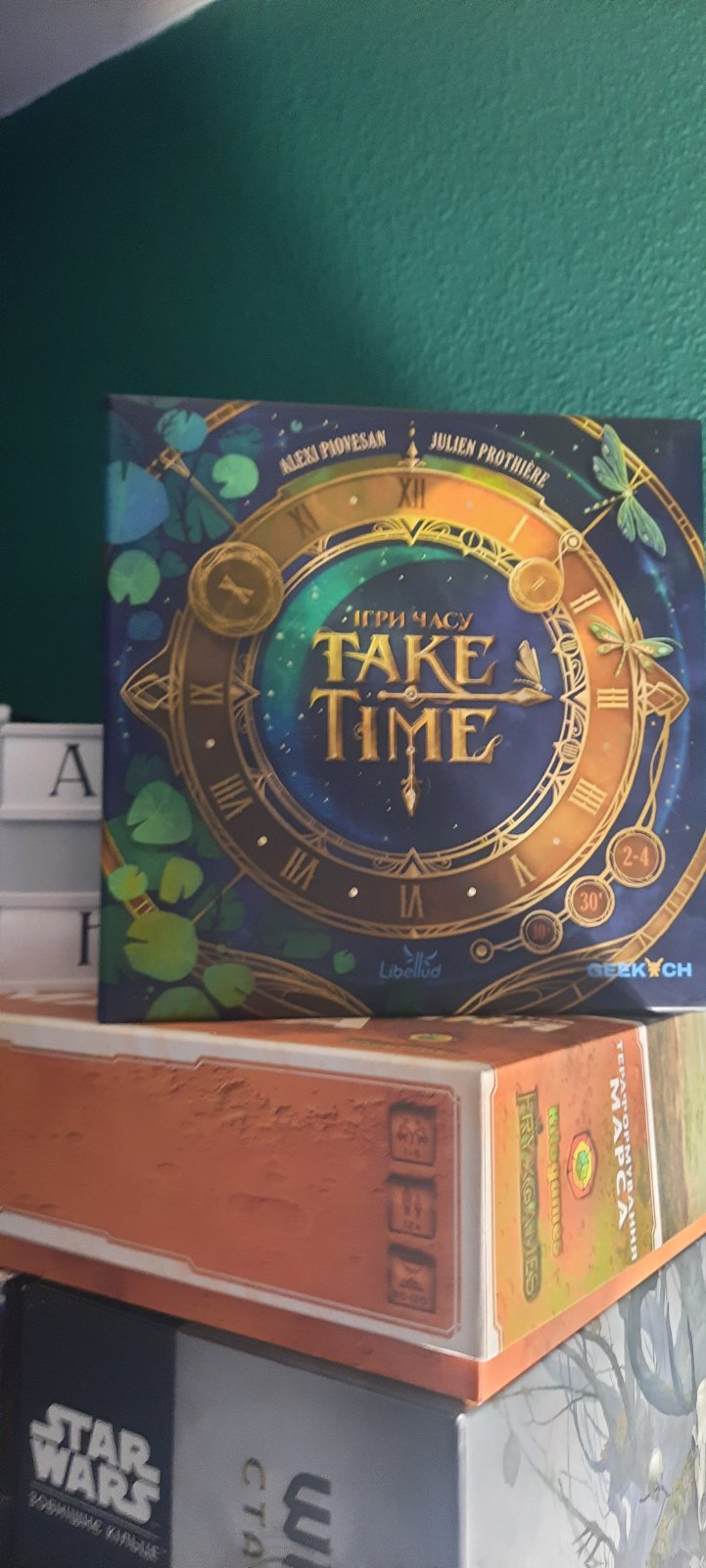 Настільна гра Ігри часу (Take Time) — це кооперативна абстрактна головоломка на дедукцію для компанії від 2 до 4 гравців, яким належить об’єднатися та розв’язати серію хитромудрих задач. Протягом 40 завдань учасники таємно викладають карти навколо різних годинників, намагаючись задовольнити умови кожного.