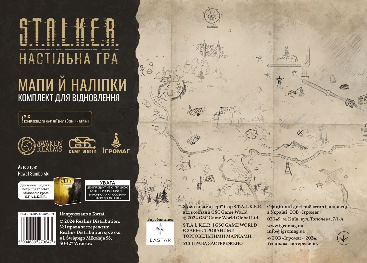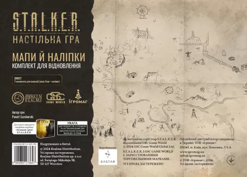S.T.A.L.K.E.R. Мапи й наліпки. Комплект для відновлення (Maps & Stickers Recharge Pack) — це розширення до відомої настільної гри, яке доповнює її ігролад новими атмосферними компонентами, такими як мапи та стікери, надаючи при цьому можливість ще глибше зануритися у неймовірний світ Зони відчуження!