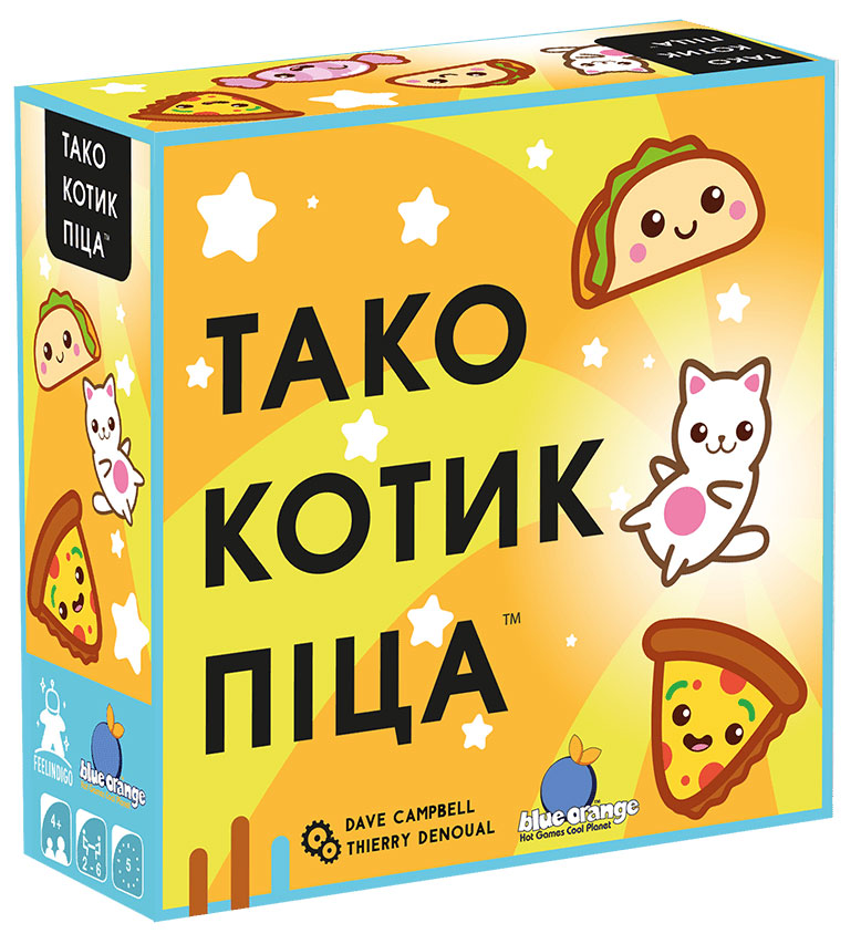 Настільна гра Тако Котик Піца — картковий патігейм для дітей від 4 років. У грі потрібно вгадувати карти та мати напрочуд швидку реакцію, щоб першим вхопити такі омріяні цукерки.