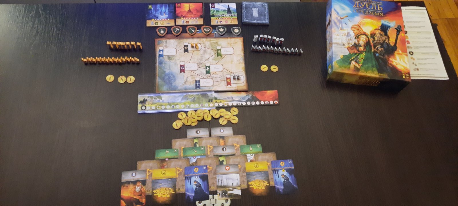 Наприклад ми мали ситуацію, коли хід суперників відкриває там 2 карти, кожна з яких виграє нам гру: одна через підтримку 6 народів, а інша - через те, що ми ходимо останні 3 кроки на шляху персня і кидаємо кільце в вогонь гори.
