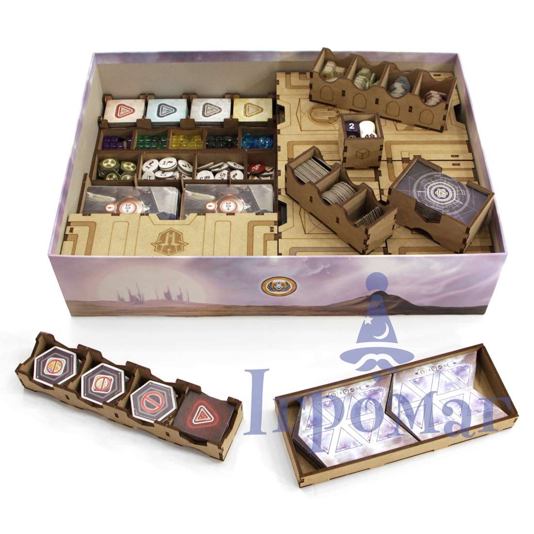 Анахронність – чудова, розумна і неймовірно цікава настільна гра з глибоким геймплеєм, досить комплексними правилами і великою кількістю різноманітних жетонів, токенів, фішок і інших компонентів. Все це потрібно якось зберігати, а при підготовці до партії швидко сортувати і розкладати. Звичайно, ви можете скористатися зіплоками, але набагато доречніше буде звернути увагу і придбати дерев'яний органайзер!