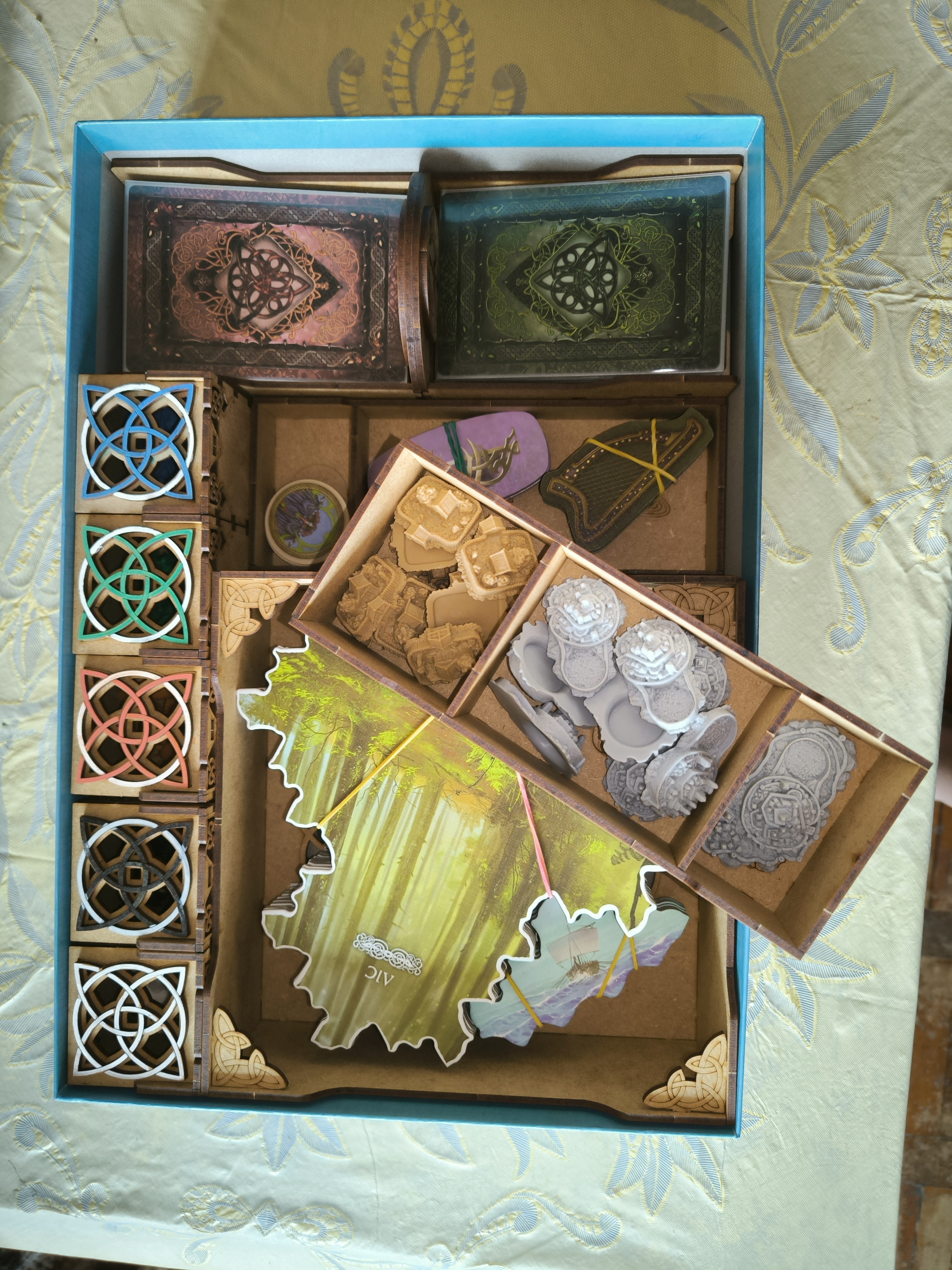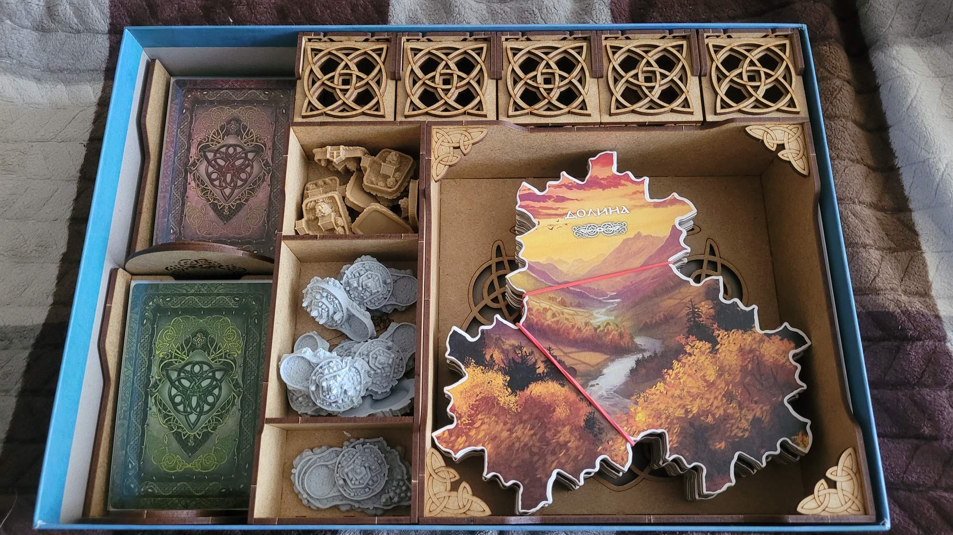 Що можна було б ще додати: підставки для жетонів Свята / Філліда. В якихось органайзерах це бачив і це було зручно. Ще не вистачає лотка для скиду епіків (скид або колоду вимушені лишати на столі), але не уявляю як його можна було б умістити.