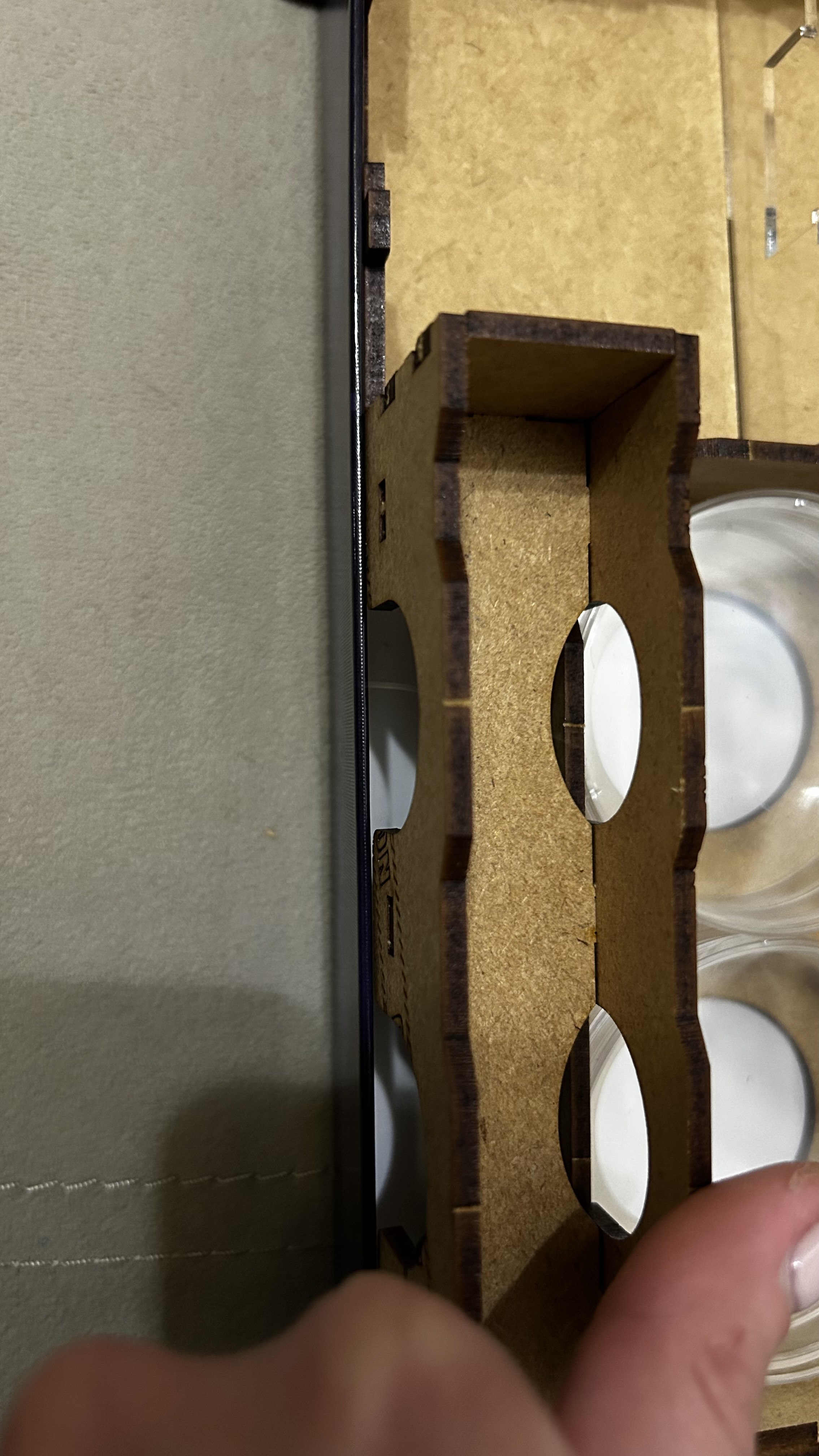Цей органайзер чудово поміститься в коробочку з грою, але не має кришки. Всі елементи закриті ігровим полем, тому всі компоненти залишаються на своїх місцях:)