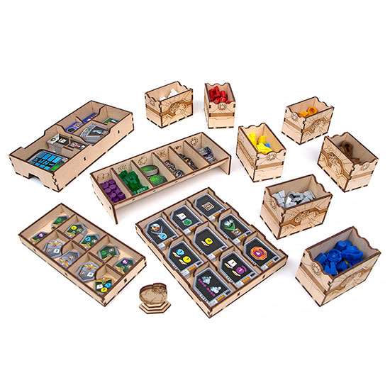 Проект Гайя дуже багато, всі вони лежать в зіплоках, і розкладка численних фішок і жетонів перед початком кожної гри - досить трудомісткий процес. Пропонуємо вам чудовий аксесуар для цієї настільної гри - дерев'яний органайзер. Завдяки великій кількості відсіків для жетонів, токенів і тайлів, підготовка до гри істотно скоротиться, а компоненти в міцному і надійному органайзері чудово збережуться протягом багатьох і багатьох партій!