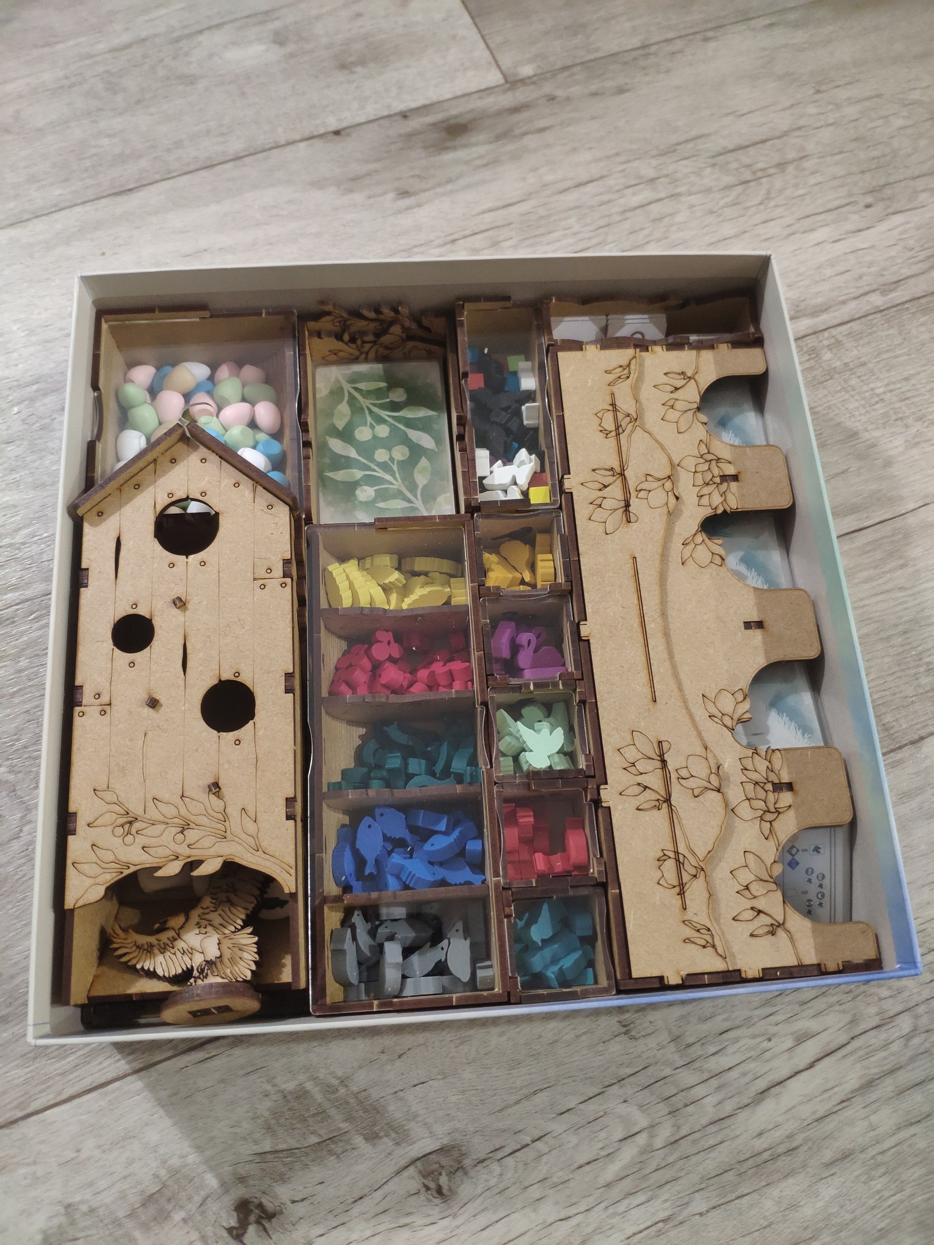 Нікіта (12-01-2026 | 09:19)Гру Крила придбали минулого року, щоб підтримати Ігромаг, а вже на Чорну п’ятницю вирішили доповнити її дерев’яним органайзером. У базовій коробці також є органайзер, проте він зовсім не зрівняється з цим варіантом. Покупкою залишилися дуже задоволені: органайзер значно спрощує підготовку до гри та зберігання компонентів, а все виглядає тематично, охайно й надзвичайно естетично.