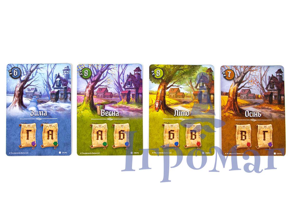 Готуючись до партії, гравці планують зробити замальовки земель протягом чотирьох сезонів одного року. Для цього перед початком партії формуються чотири стопки карток для кожного з сезонів.