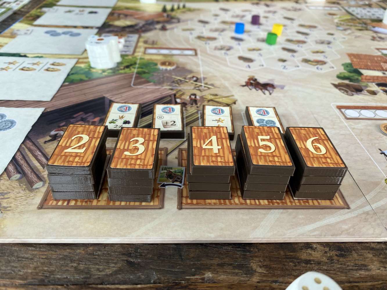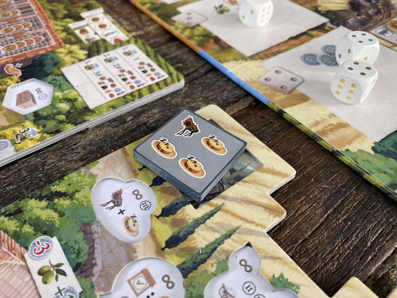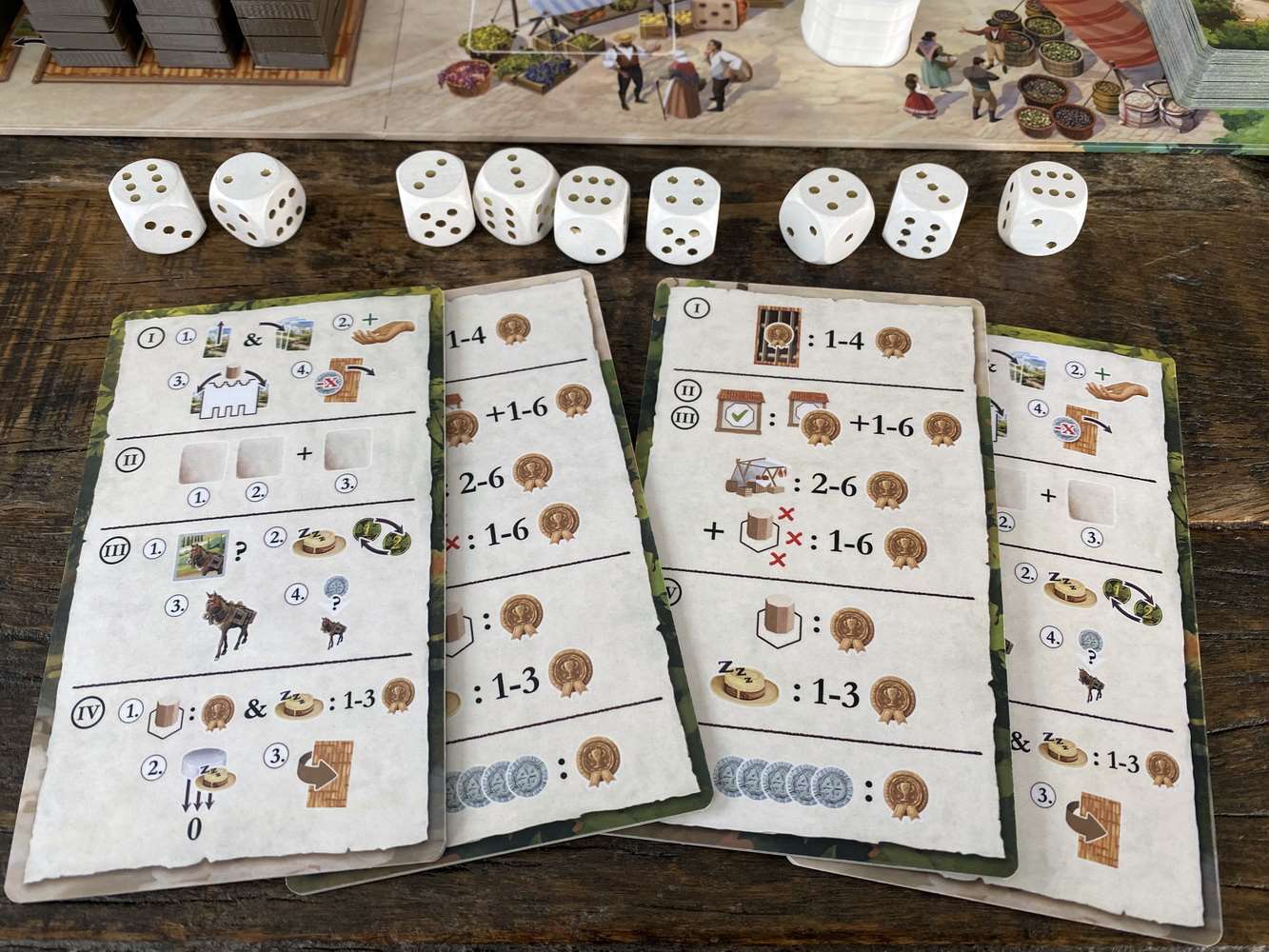 - фаза підрахунку балів, коли гравці отримують бали за заповнені товарами будівлі на ігровому полі та за положення на треку Сієсти.