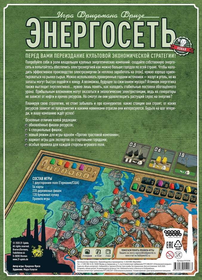 Комплектація настільної гри «Енергомережа. Нова редакція»: