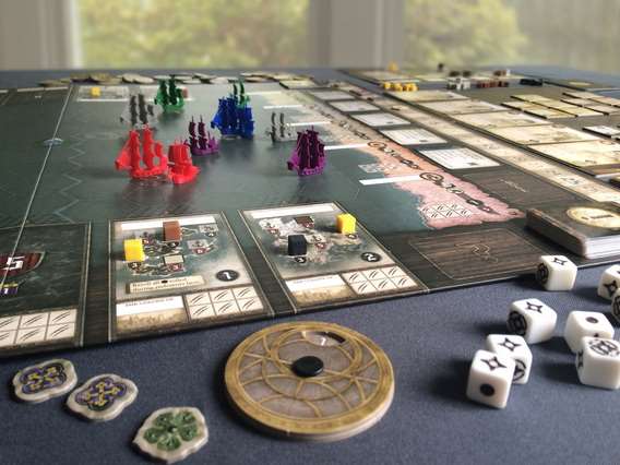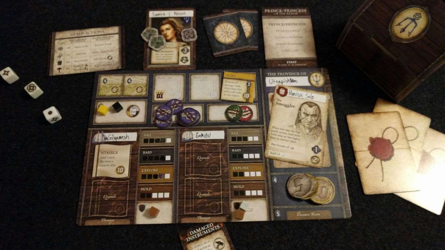 Тут існує таке поняття як ігровий рік, який триватиме 6 раундів. На початку кожен гравець отримає свій власний планшет, на якому відведені спеціальні місця для кубиків товарів, помічників, карток кораблів. Згодом кораблі можна прокачувати, посилюючи їх маневреність, міць і місткість.