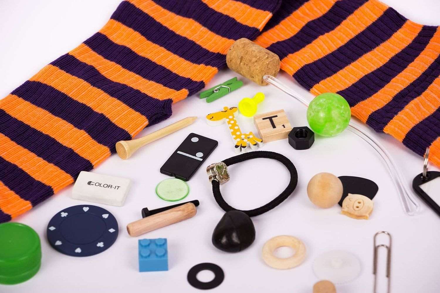 Зараз ми пропонуємо вам дещо незвичну гру – гру з шкарпетками! Ні, тут не потрібно їх шукати, сортувати чи ще щось подібне. Потрібно загострити свої тактильні відчуття та інтуїцію, щоб знайти в шкарпетці потрібний предмет.Тип: весела тактильна гра для вечірки