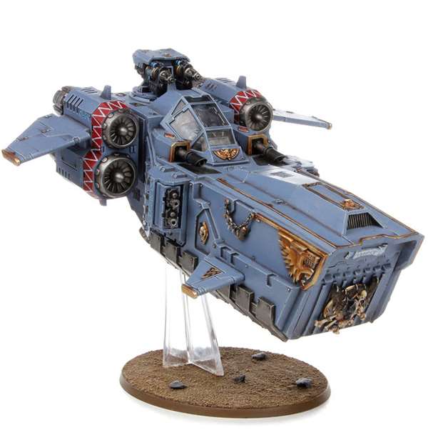 Комплектація набору "Space Wolves Stormfang Gunship": – деталі для збірки мініатюри Штурмового корабля Їкло Бурі Космічних Вовків