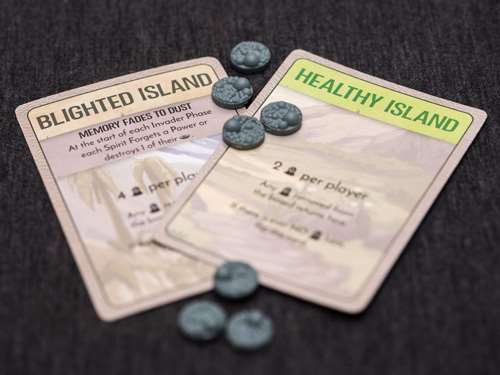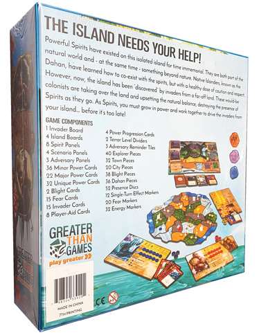 Загарбники теж не сидять склавши руки, а розмірено та впевнено просуваються вглиб територій Острова, досліджуючи, а потім і забудовуючи його. Вся їх діяльність призводить до забруднення локацій, виганяючи духів природи, а потім і знищуючи здоров'я самої землі. Гравці за духів програють, коли їм більше не буде куди відступати з заражених територій.