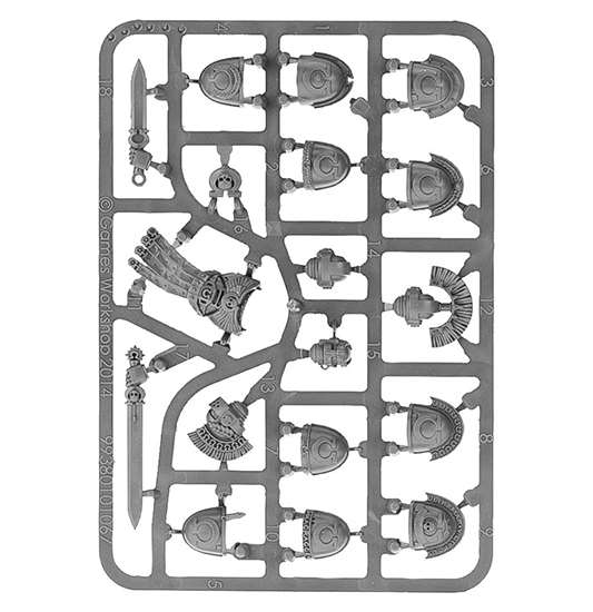 Комплектація набору "Ultramarines Upgrade Pack": – 19 деталей для прикріплення до мініатюр Космодесанту
