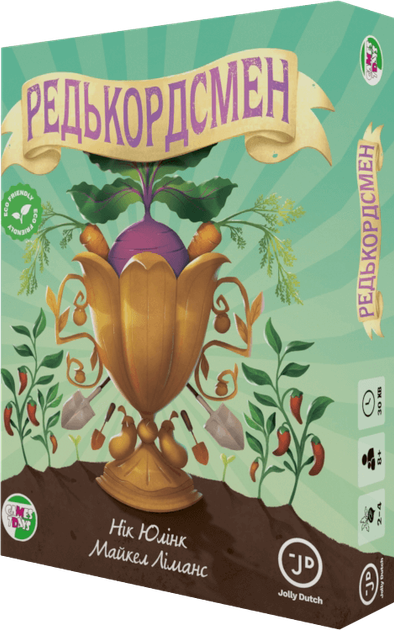 Редькордсмен (Unbeetable) — це справжній конкурс фермерів! Настільна гра розрахована на 2-4 гравців, які змагаються у створенні найкращих городів. Учасники мають змогу сповна насолодитись усіма радощами фермерства. Та не все так просто, адже колеги-фермери стають одне для одного затятими конкурентами. Вони зроблять все для того, щоб зіпсувати Ваш урожай: висадять бур’яни, створять повінь, нагонять град та рій попелиць — шкідників, які висмоктують рослинні соки.Тип: карткова, сімейна