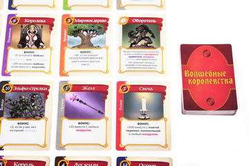 Говорячи простіше, колода карт гри Чарівні королівства ділиться на десять мастей по п'ять карт в кожній і три карти джокерів, які можуть замінити будь-яку. На картах ви знайдете безліч комбінацій, які можуть підсилювати один одного або додавати інші дії.